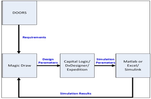 As with any engineering project, one must first determine the requirements before developing an architectural and functional design, performing simulation and implementing the design in a physical system. The basis for this work comes from a variety of contextual sources and is conducted using a multi-tool environment (see Figure 9) that is tied together with at least one a Digital Thread. In the case of a generator, essential design issues would focus on power transmission requirements, voltage loss and static-dynamic system loads.